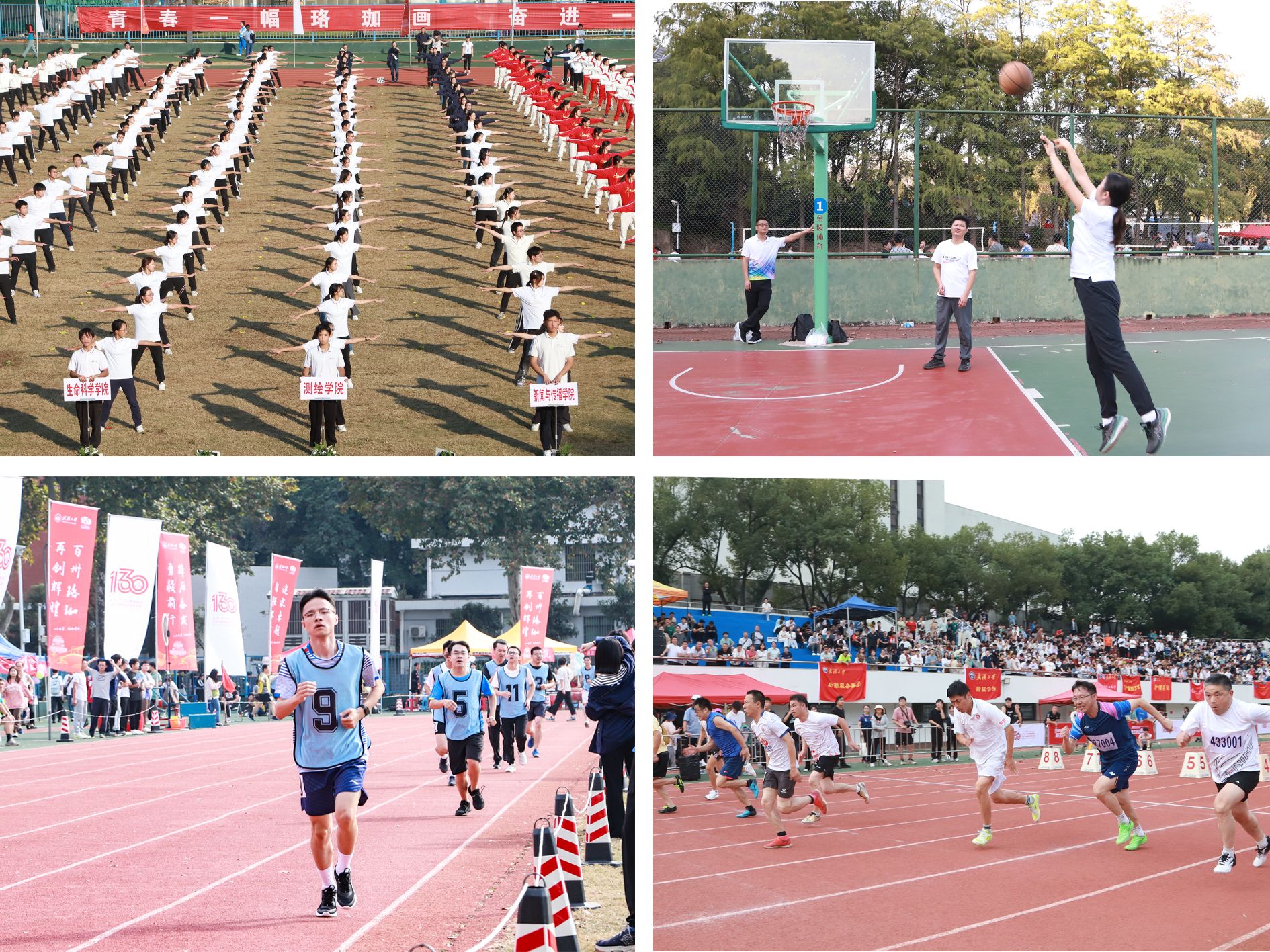 秋风送爽,11月2日至4日学校举办首届师生田径运动会,全校共有44个二级工会代表队近3000名教职工参加了15个单项和5个集体项目的教职工组比赛。经过全院教职工的奋勇拼搏,取得团体总分第七,院系总分第一的好成绩。