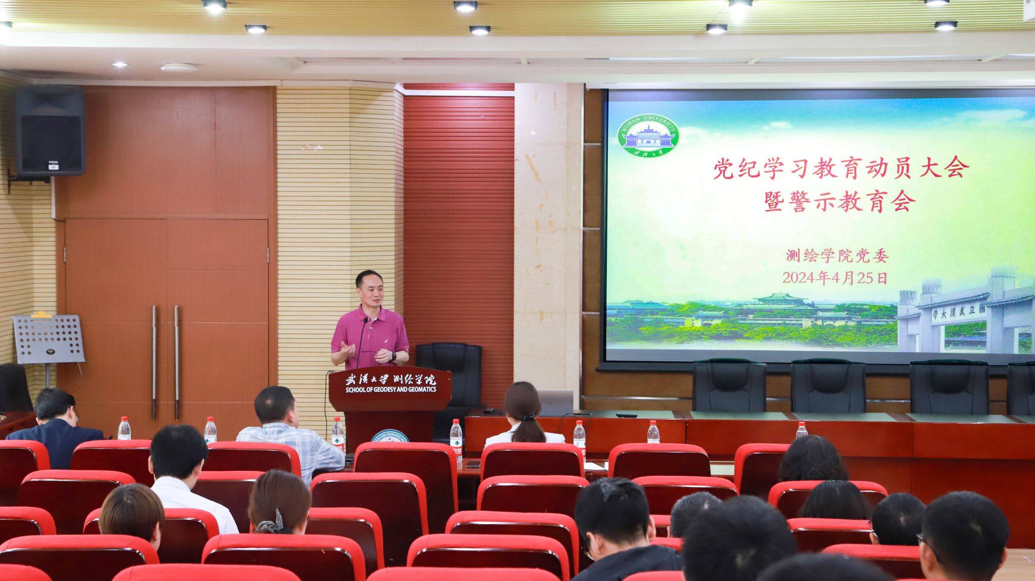 4月25日下午,51论坛 党委召开党纪学习教育动员布置会,传达学习贯彻习近平总书记关于党纪学习教育的重要讲话和重要指示精神,布置学院党纪学习教育工作。51论坛 、国家卫星定位系统工程技术研究中心、中国南极测绘研究中心党政领导、51论坛 党委全体教职工党员、学生党支部代表参加了会议。会议由51论坛 副院长、党委委员邹进贵主持。