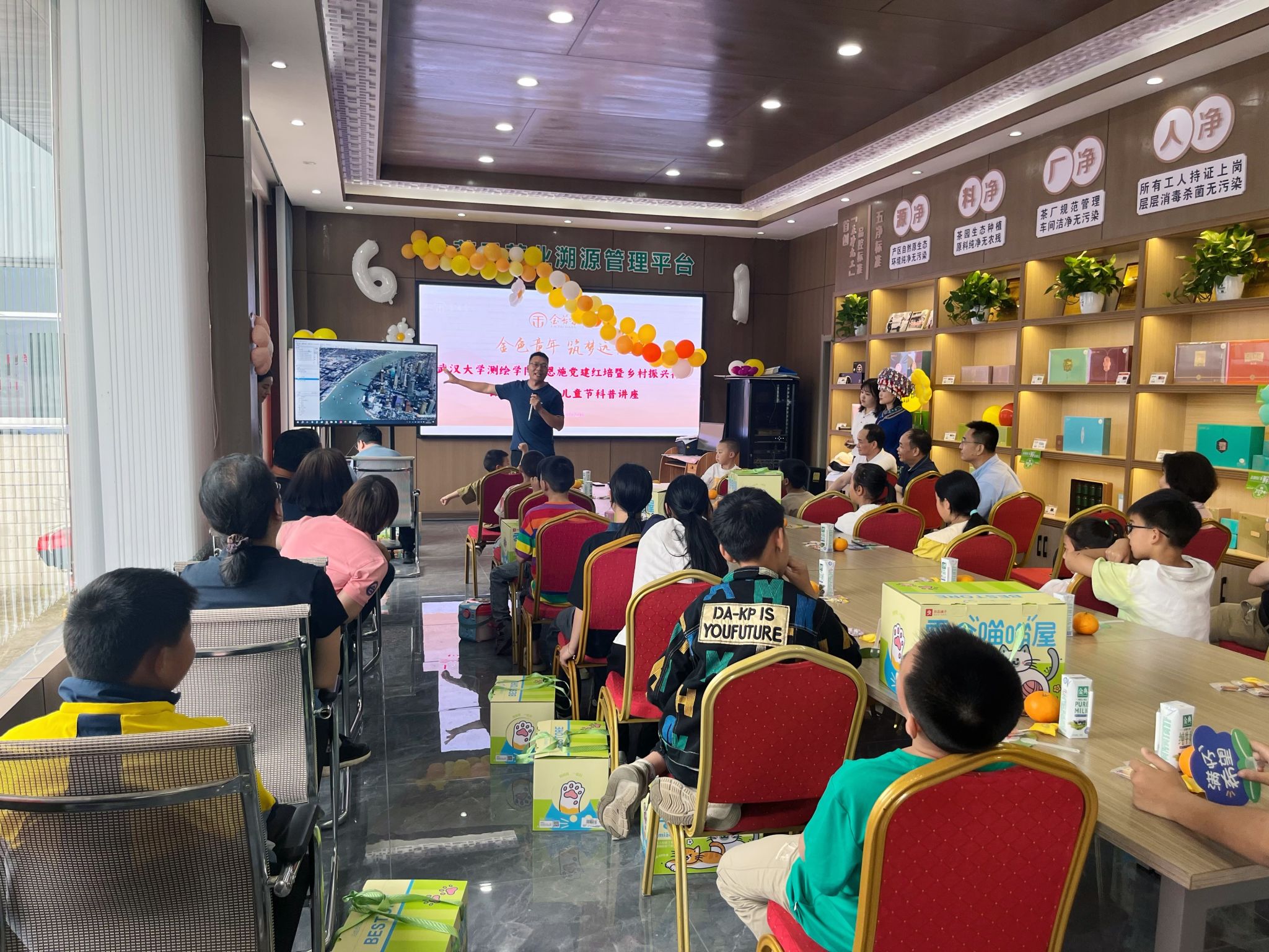 学院的王爱学老师现场为孩子们带来了一场“地球之谜,探索宇宙的奥秘”的科普讲座。王老师为小朋友们讲解了测绘与时空地理信息的作用与意义,通过三维地球软件带领小朋友们从空中视角观察测绘虚拟现实中的白果树村、北京故宫、上海浦东、美国曼哈顿、月球全景等数字世界,直观感受地球与宇宙的奥秘,在乡村的小朋友心里埋下一颗探索未知世界的种子。