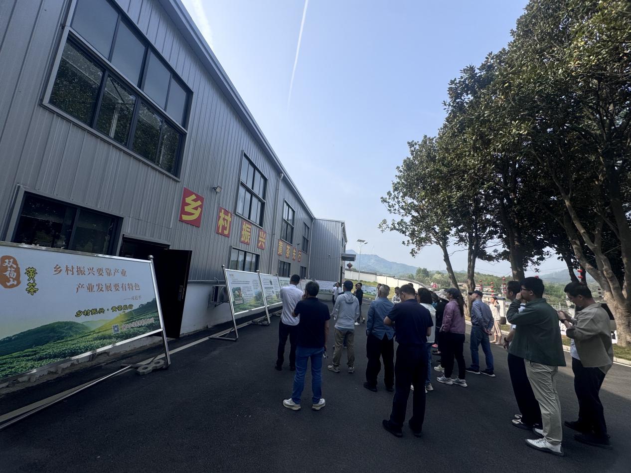 在双福山茶叶基地的研学环节中,党员们深入探访大悟县新城镇朱湾村的茶产业发展模式。基地负责人介绍,当地以“大悟黄茶”地理标志品牌为依托,延伸茶叶加工、茶旅融合产业链,带动村民收入增长。党员们走进茶园观摩现代化种植技术,与茶农交流数字化溯源管理、电商直播等创新举措,从一片绿叶的“增值之路”中,感悟基层党组织在盘活资源、培育特色产业中的核心作用。