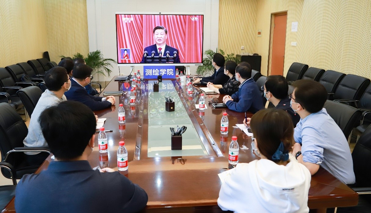 卫星导航技术研究中心教职工党员在星湖楼会议室集中观看