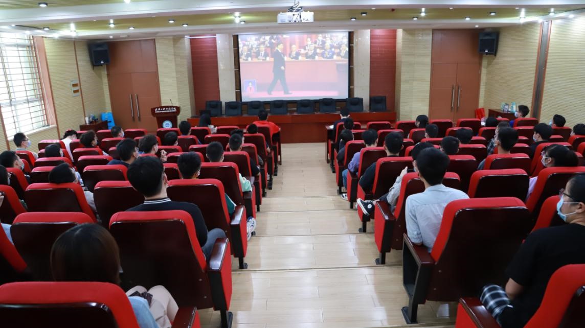 学院本科生党支部、研究生党支部支委成员等在202报告厅集中观看