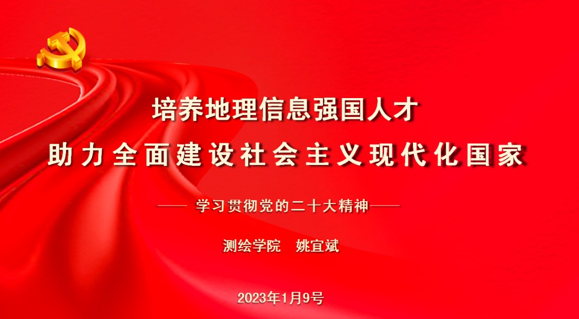 培养地理信息强国人才,助力全面建设社会主义现代化国家 ——院长姚宜斌宣讲党的二十大精神 时间:2023-01-09