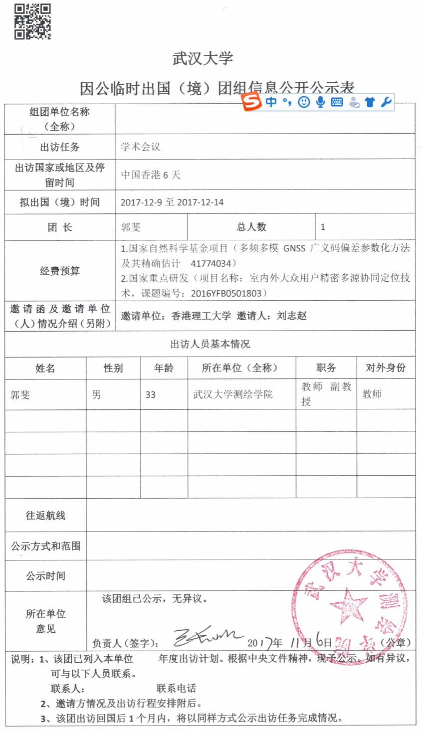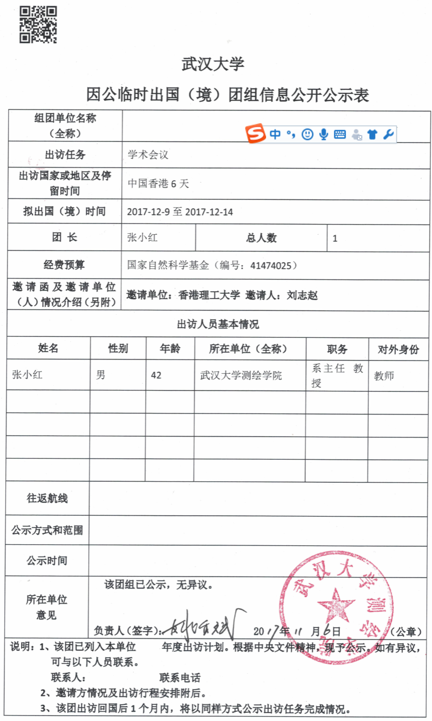 因公临时出国(境)信息公示