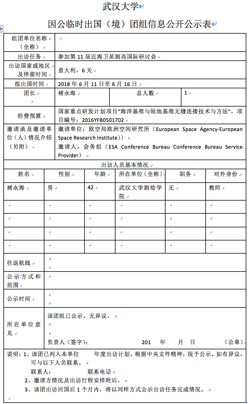 因公临时出国(境)信息公示