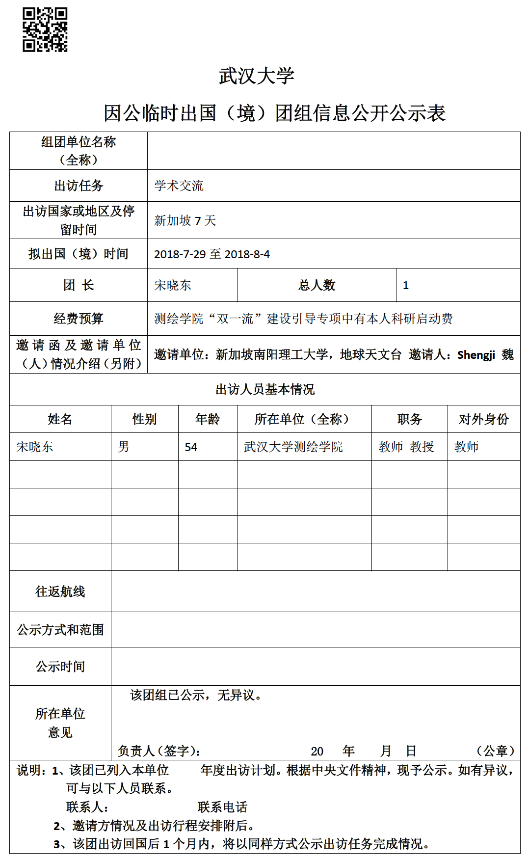 因公临时出国(境)信息公示