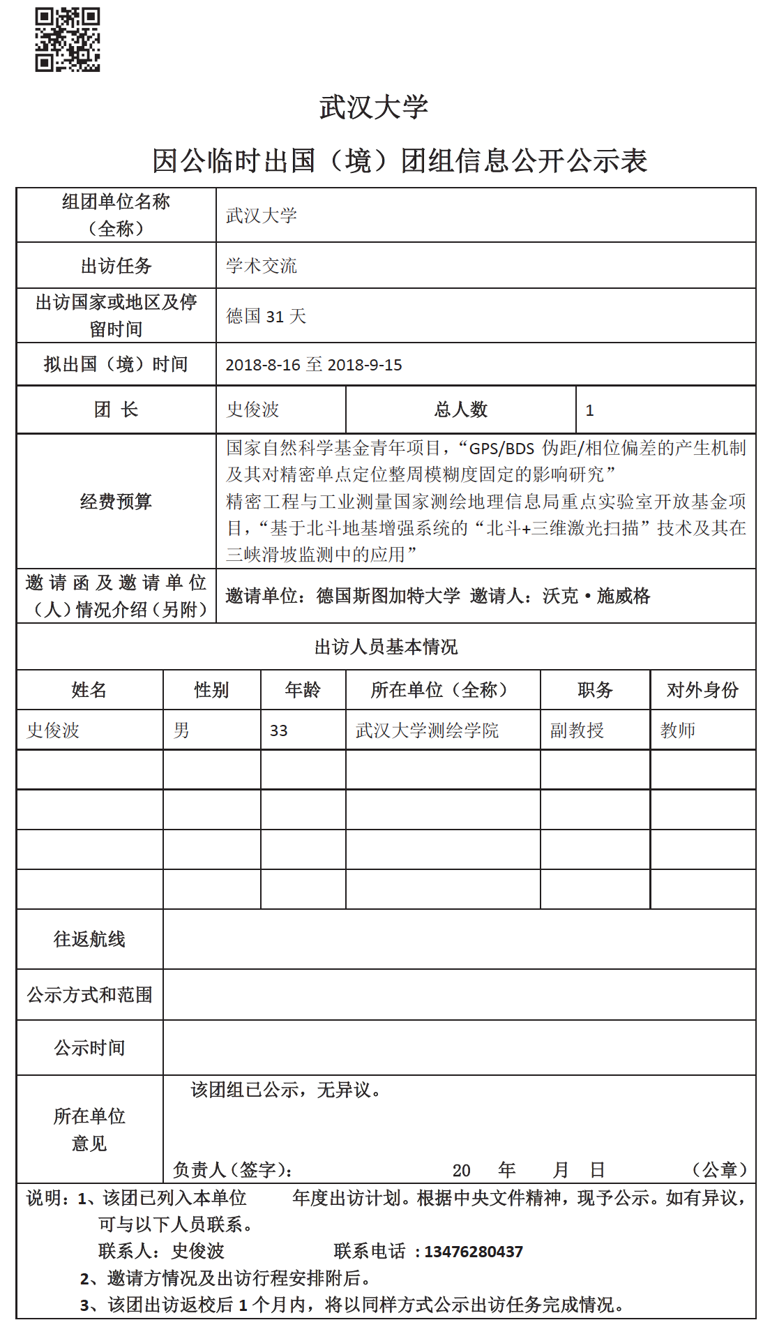 因公临时出国(境)信息公示