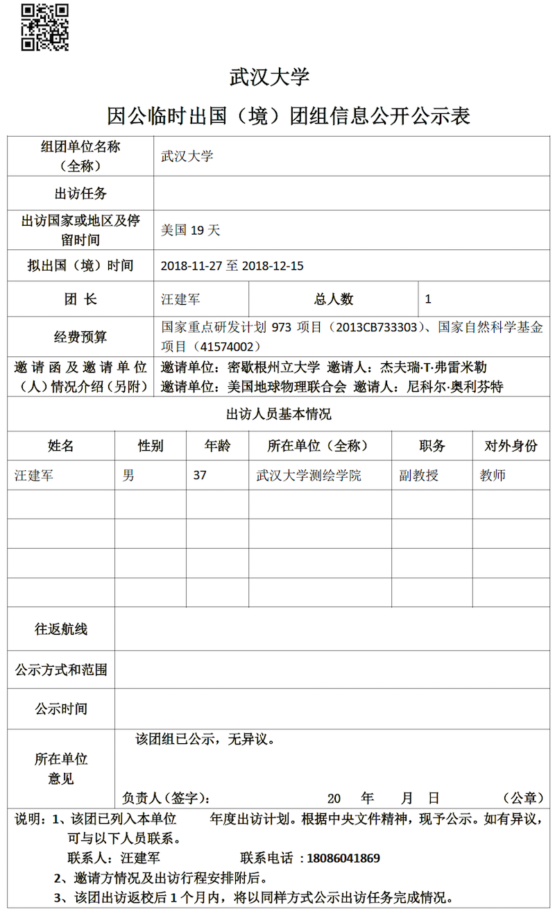 因公临时出国(境)信息公示