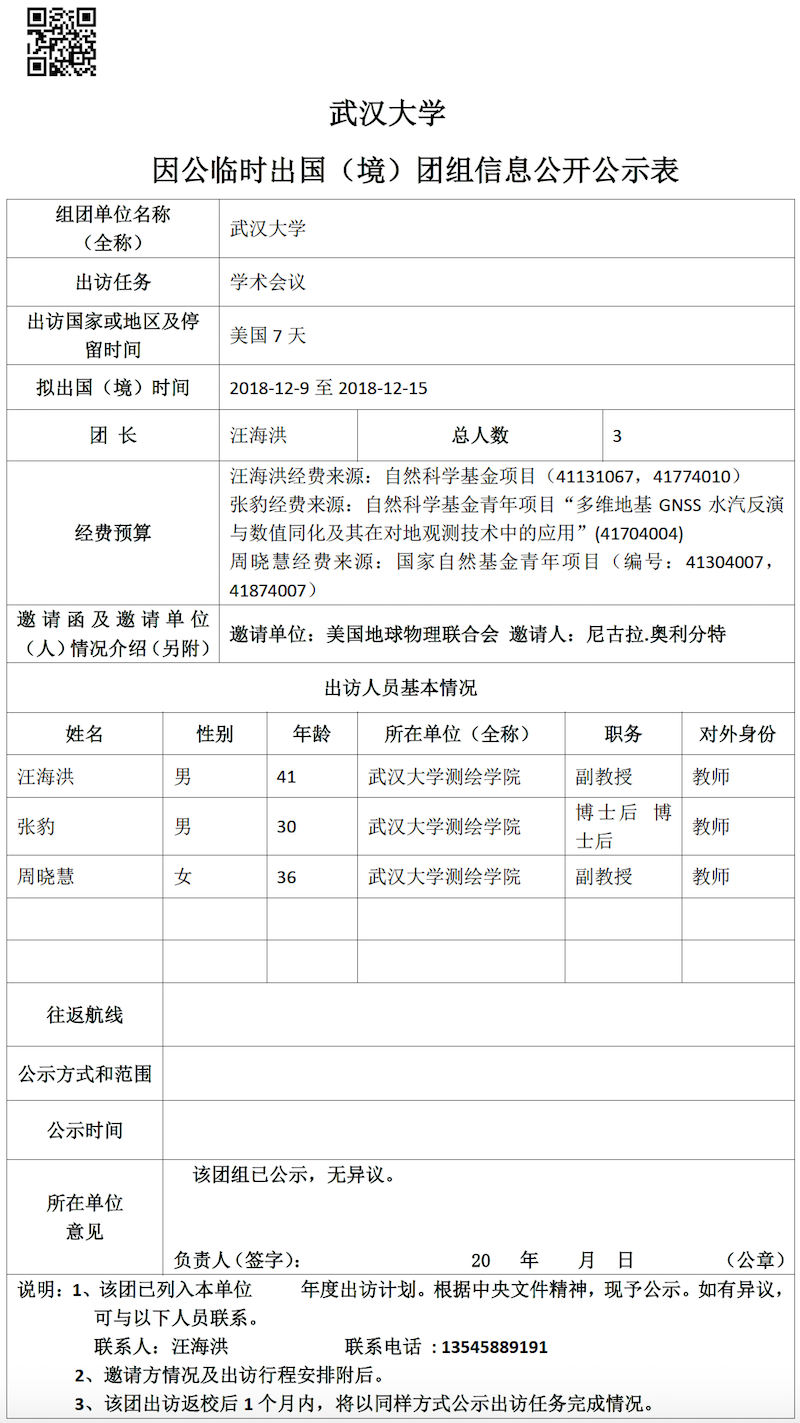 因公临时出国(境)信息公示
