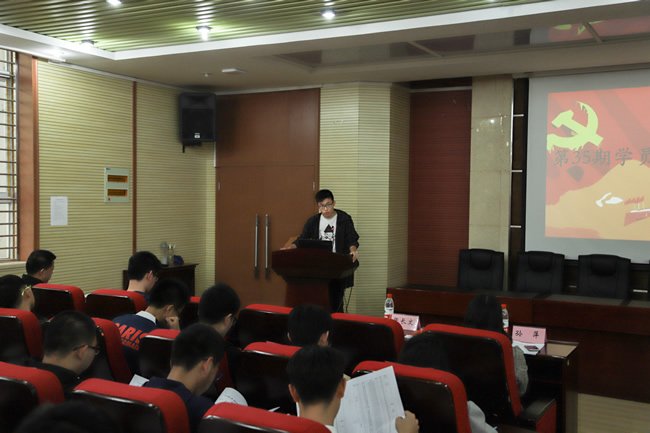 本期学员代表陈思尚同学发言。他表示一定要珍惜难得的学习机会,努力增强学习的主动性和自觉性,做到学有所得、学有所悟、学有所行,在思想上和行动上向党组织靠拢。