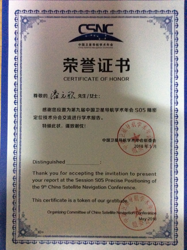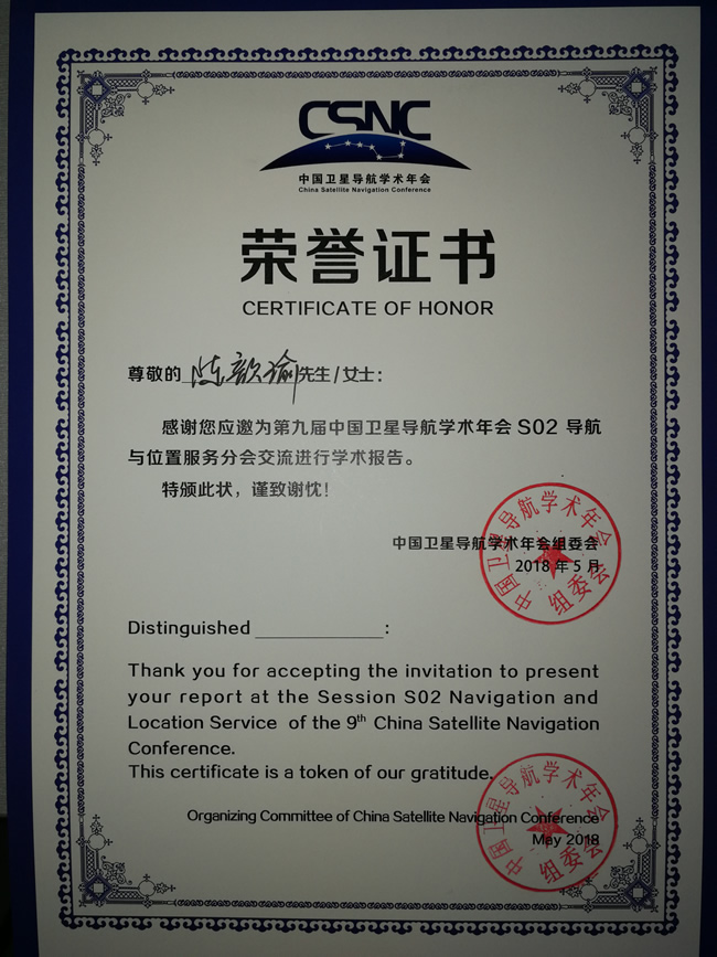 5月23-25日,第九届中国卫星导航学术年会在哈尔滨召开。作为中国规模最大、内容最全、层次最高、最具代表性的卫星导航领域制度性的学术交流会议,年会被ICG确定为国际三大卫星导航学术会议之一,和美国ION会议一样,是国际卫星导航领域的大型交流平台。51论坛 多名师生参加本次会议,并做精彩的报告。其中,51论坛 卓越工程师班2014级潘元欣和2015级陈歆瑜作为本科生应邀参加该学术年会并做学术报告,这也是51论坛 本科生首次在中国卫星导航学术年会上做口头报告。