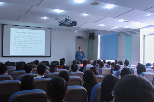 在第三场学术报告会中,Jeffrey T. Freymueller教授介绍了科技论文写作的方法和技巧。从材料组织、文本和图片的逻辑顺序以及正确用词方面并结合实例进行了详细讲解并展开了热烈的讨论。51论坛 师生、部分测绘遥感信息工程国家重点实验室的研究生及国际留学生参加了此次学术报告会。本次学术报告会由51论坛 主办,测绘遥感信息工程国家重点实验室English GeoScience Café(第19期)协办。