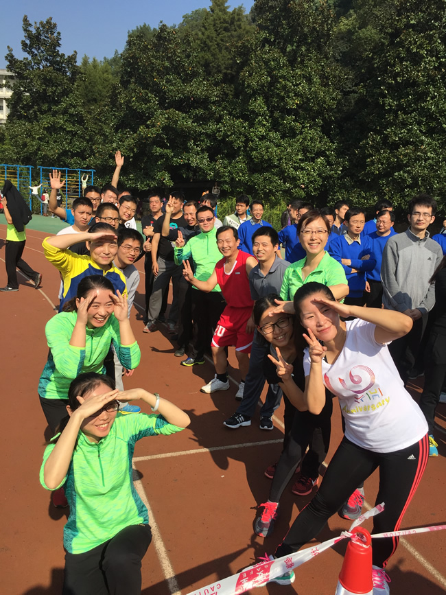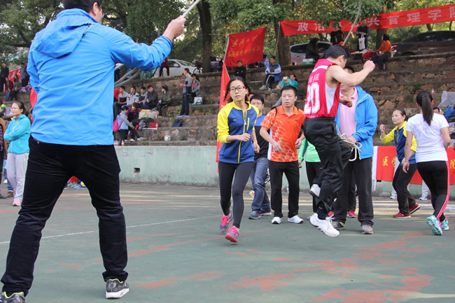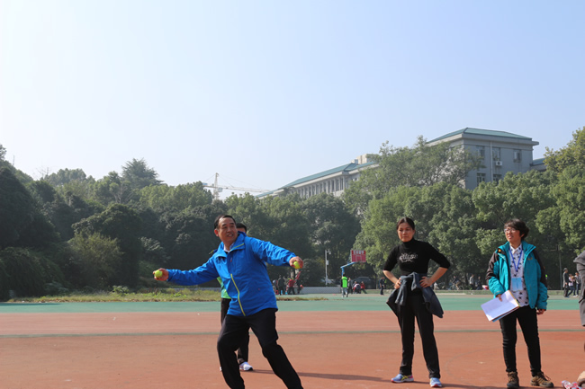 此次运动会,校领导带头参与。作为联系51论坛 的校领导,副书记、副校长王传中教授带头参加网球掷准等项目比赛,极大地鼓舞了我们的士气。学院老师踊跃参加。31名老师参与广播体操比赛,另外有20余名教师参加其他项目比赛。老师认真训练,团结拼搏,力争第一。院领导高度重视,院长姚宜斌,院党委书记孙萍等院领导带头参赛,现场指导。院工会精心组织,抓好保障,加强管理,提升服务,重视创新集体项目管理方式,对于篮球投篮、足球射门、迎面接力、跳绳比赛等集体项目采取项目承包制,激发动力,落实责任。其他教职工和家属们纷纷前往在比赛现场做好服务,加油助威,通过多种方式关心、支持和融入运动会。