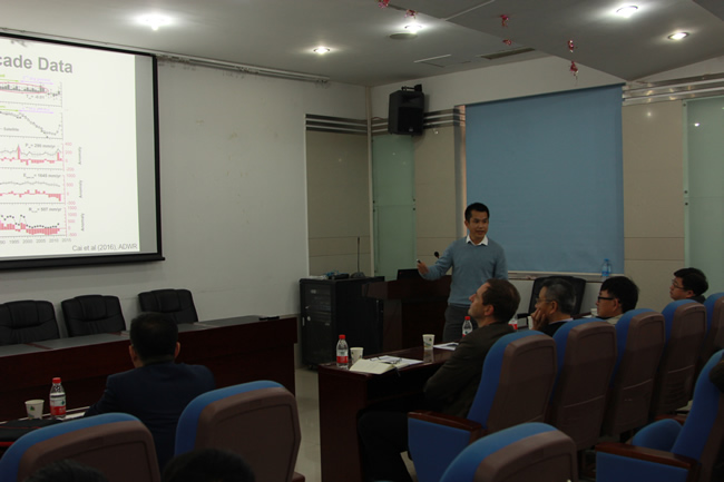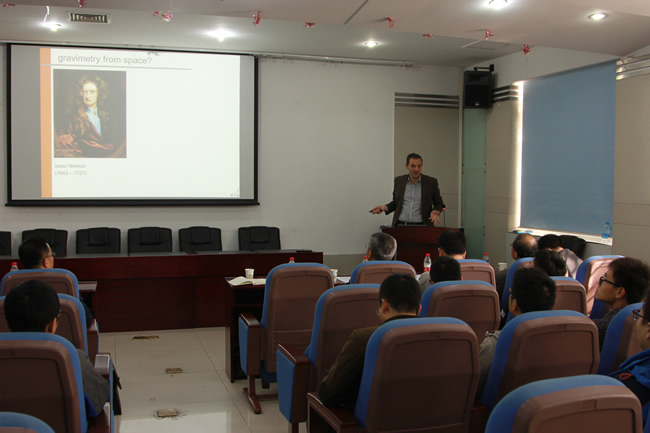 3日下午,与会国外专家进行学术报告。Nico Sneeuw教授、王艳明研究员、黄建梁研究员、蔡缵思博士、蔡剑青研究员先后作学术报告,题目分别为“下一代卫星重力计划:欧洲的进展及算法问题”的报告、“最新NGS大地水准面建模进展”、“GRAV-D航空重力数据分析用于大地水准面建模”、“中国第五大湖会干涸吗?”、“全球变化监测的现代空间大地测量技术-国际大地测量合作的新局面”。与会人员还就相关学术问题进行了深入交流。
