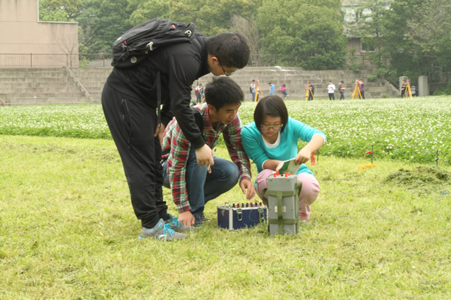 此次比赛主要是外业操作比赛,测绘工程专业分为导线测量和水准测量两个比赛项目,每个项目又分为仪器操作测量环节和数据处理环节。地球物理专业包括地磁、地电、重力三个比赛项目。此次测绘工程专业有85支队伍,地球物理专业有9支队伍,共360余名学生参加。