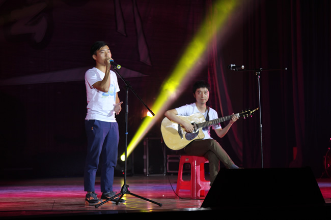 随着毕业生的照片展览、1208班组成的乐队为同学们带来了三首风格各异的曲目,有伤感,有抒情,也有激情,晚会就这样随着情绪的高涨渐入气氛。