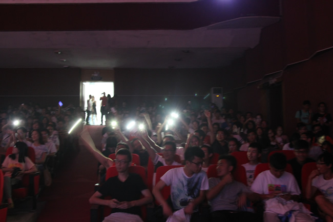 晚会的第一波高潮来了。八点二十分左右,由12级辅导员张婧老师和研究生辅导员褚丽丽老师合唱的《明天,你好》,从出场开始就瞬间引爆了大四同学们的情绪,台下连续不断的欢呼、尖叫,观众席上成片整齐挥动的闪光灯,上台送花,微信墙刷爆,张老师哽咽到快要唱不下去,这一切都在见证着张老师和大四同学们之间四年陪伴的深厚情谊。