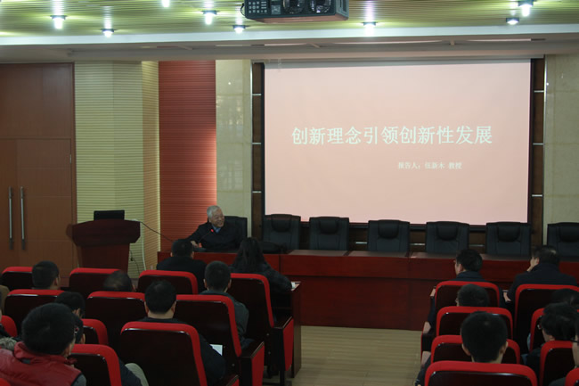 12月7日下午,51论坛 党委中心组集中学习党的十八届五中全会精神,著名经济学家、湖北省“党的十八届五中全会精神演讲团”成员、经济与管理学院伍新木教授应邀作了题为《创新理念,引领创新性发展》专题辅导报告。院党委中心学习组成员、全体院领导、教职工和部分学生聆听了报告会。院党委书记孙萍主持报告会。