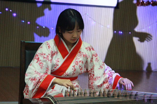 张朝龙致词,为师生送上新年祝福。青春洋溢的开场舞后晚会拉开帷幕。徐文和金炜桐同学带来的歌曲《梨花又开放》婉转悠扬的;博士李天烁和孟丽媛表演的相声《新地理图》别有新意;本科生M.A.N舞团的劲爆《Sparks》舞蹈活力十足;褚丽丽老师和吴帮、邱国庆三人合唱的《爱》将晚会推向了高潮。李瑶、赵赛男上演了原创小品《邂逅宏博,邂逅你》 令人捧腹,高康同学的一曲《小幸运》让人思绪飞扬,随着胡新乔、于道成的相声《曲解艺术》和张依诺独舞《Old English》之后,晚会迎来了压轴节目--测绘版《南山南》和《我好想你》,由吴帮演唱、金荣河吉他伴奏。