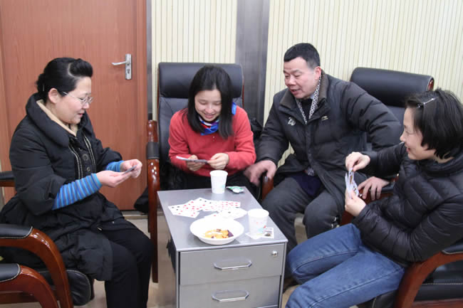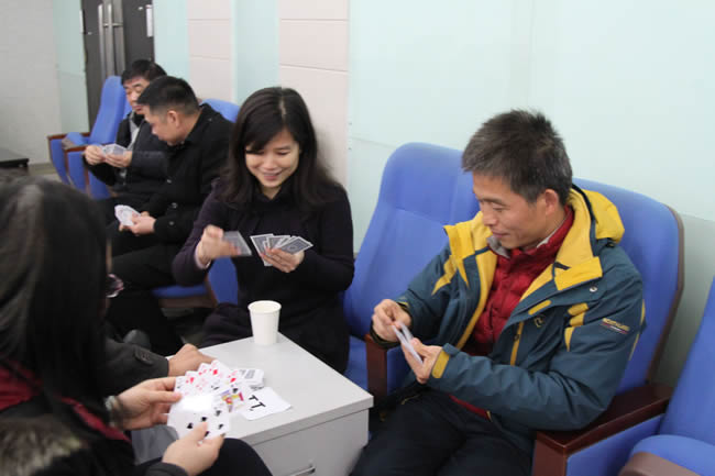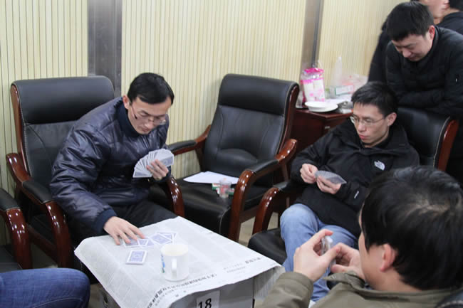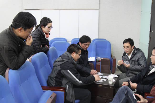 扑克牌“双升”比赛是此次智力运动会的重头戏,老师们报名踊跃,捉对厮杀”,比赛紧张激烈,精彩纷呈。经过三轮激战,两对选手脱颖而出,拔得“双升”比赛头筹。另外,还有中国象棋、围棋比赛。