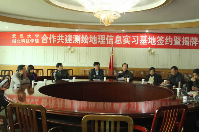 11月4日下午,51论坛 -湖北科技学院合作共建测绘地理信息实习基地验收会在湖北科技学院咸安校区举行。51论坛 发展规划与学科建设办公室、实验室与设备管理处、后勤保障部、51论坛 、遥感信息工程学院、资源与环境科学学院,湖北科技学院国有资产与实验室管理处、资源环境科学与工程学院等单位领导参加会议。会议由51论坛 实验室与设备管理处副处长杨旭升主持。