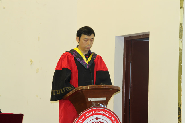 紧接着,毕业生依次走到台上,接受学位授予。姚宜斌、闫利、桑吉章、郭际明、黄声享、罗志才、花向红、张小红、罗年学、邓非等教授郑重地将一名名毕业生学士帽上的流苏从帽檐右前侧移到左前侧,并颁发学位证书。毕业生纷纷与导师、同学合影留念。部分毕业生的家长也特地赶来见证这一难忘时刻。