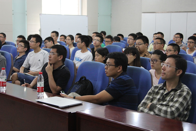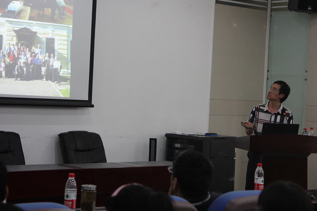 金双根研究员作了题为“The dawn of Space Geodesy: Recent advances and future opportunity”的报告。金双根介绍了空间大地测量观测、地表形变、深部地球动力学等当今地学重要热门领域的最新研究进展,以及他近年来在GRACE和GPS等方面的研究成果,尤其是他提出的GPS温度计新概念引起了师生们的极大兴趣。