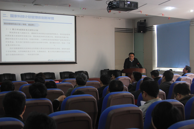 院长助理闫利作了学院学科与科研工作的报告。他首先介绍了国家各部委各类科研项目的设置、申请和评审等方面的基本情况。他指出,随着科研政策的进一步调整,国家将建立公开统一的国家科技管理平台,整合现有科技计划,优化科技计划布局等。针对这些变化,学院和老师们要提早谋划,主动应对。