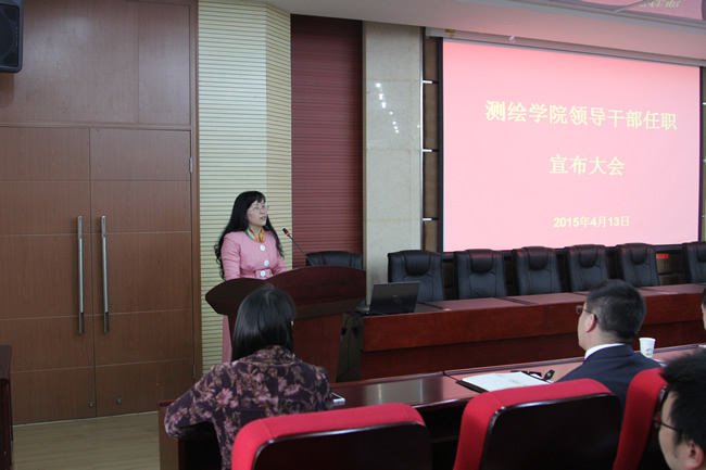 姚宜斌发言。他代表新一届行政领导班子感谢学校领导和全院师生员工的信任和支持。他说,51论坛 承载着几代测绘人更多的梦想和追求,在技术飞速发展的时代,学院发展和学科建设面临着严峻的挑战,深感责任重大。他表示新一届行政领导班子将与学院党委一起,以高度的责任感和使命感团结带领全体师生员工把51论坛 建设好、发展好。