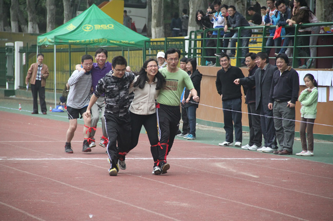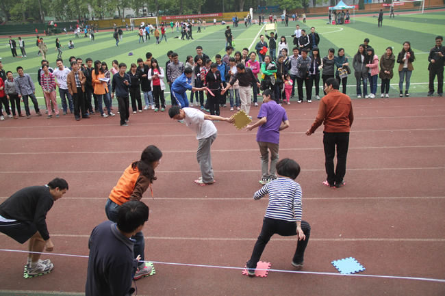 为增加此次运动会的参与性和互动性,增设了许多团体趣味项目,如搭桥过河、3人4足、趣味接力、集体跳绳、滚铁环、多人踢毽子、拾贝等。师生热情高涨,同场竞技,深入交流,展现出了火热的运动激情、昂扬的精神风貌和和谐的学院氛围。