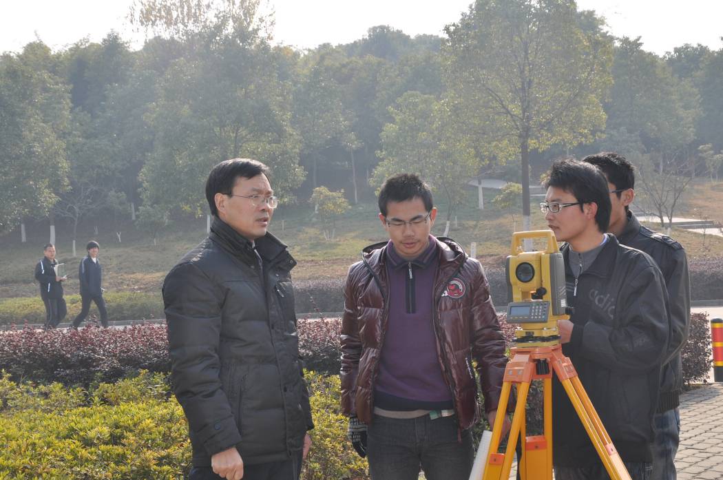 12月19日,51论坛 负责本科生思想教育和教育教学的主管领导张仁杰副书记、郭际明副院长,以及学科办汪志明主任、学工办徐晖老师一行四人前往51论坛 大花岭实习基地看望正在进行“数字测图实习”的测绘工程专业2010级的同学们和实习指导老师们。