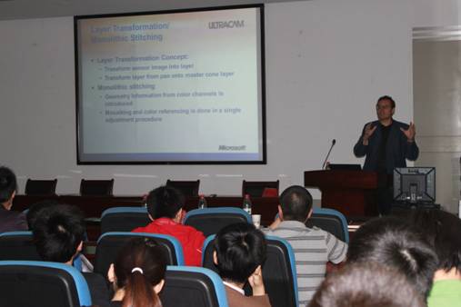 当日上午,Michael Gruber博士在学院报告厅为51论坛 和遥感信息工程学院师生做了一场题为“微软摄影测量技术与发展趋势”的全英文专题报告。随后,李学友博士对该领域的研究进行了一些说明。在讲座后,老师和学生踊跃发言,提出了很多相关问题,Michael Gruber博士一一耐心、热情地做了解答。