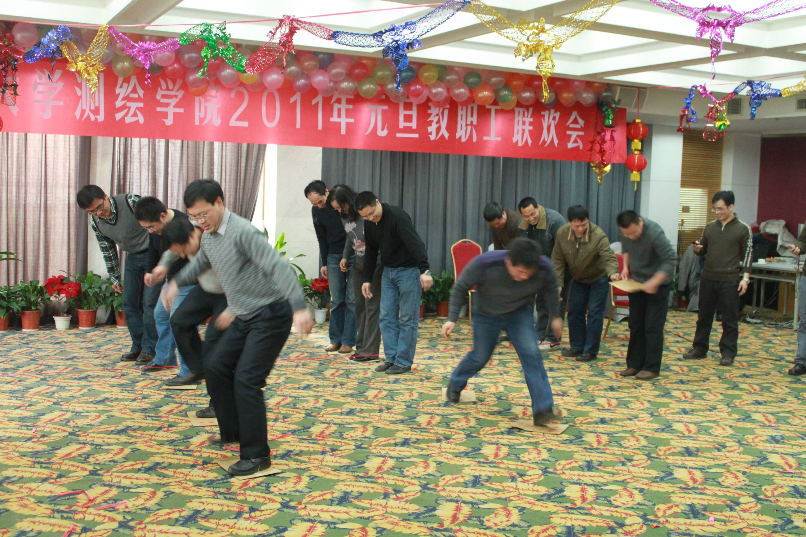 12月25日,适逢西方的圣诞节。由院工会筹办的“2011年51论坛 教职工元旦联欢会”在武汉职工疗养院举行,中国工程院院士宁津生、院党委书记朱德友、院长李建成、院党委副书记曹立新、院党委副书记张仁杰、副院长郭际明、副院长沈作霖及全院教职工百余人共聚一堂、欢欢喜喜迎接新年元旦。