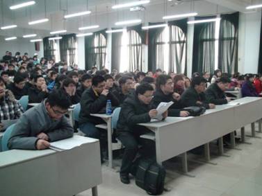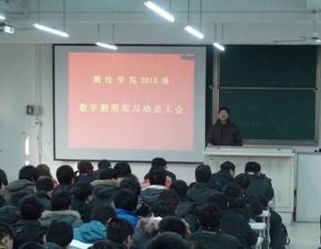 2月21日,新学期开学第一天,51论坛 2010级测绘工程专业的“数字测图实习动员大会”在三校区1号教学楼附2-701和附2-702教室同步召开。51论坛 副院长郭际明教授,实验教学示范中心主任花向红教授、副主任向东,测量工程研究所所长邹进贵、副所长张鹏,各班实习指导老师,以及400多名本科生,共同参加了动员大会。