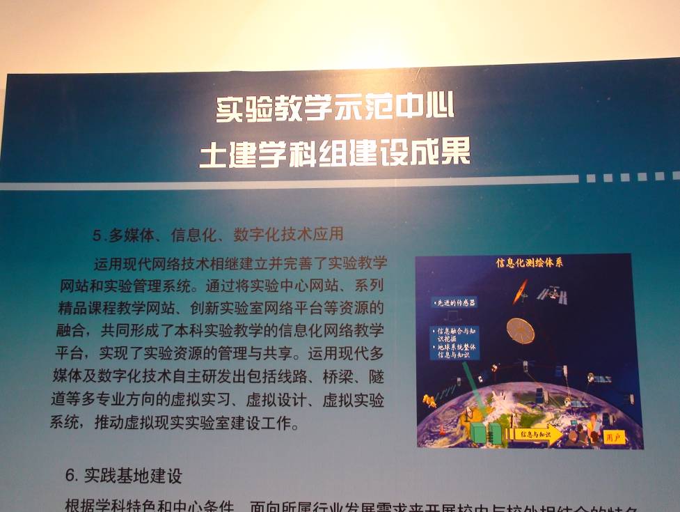 在本次成果展示交流会上,我中心副主任陈雪丰副教授、助理实验师章迪通过参观其它实验室建设成果、同与会代表尤其是土建学科类的兄弟院系实验室讨论交流,取得了大量值得借鉴的重要经验;并通过参展、投放宣传资料和播放视频等方式,进一步扩大了实验中心的知名度。本次会议的参加,对促进国家级测绘实验教学示范中心建设具有重大的借鉴和指导意义。