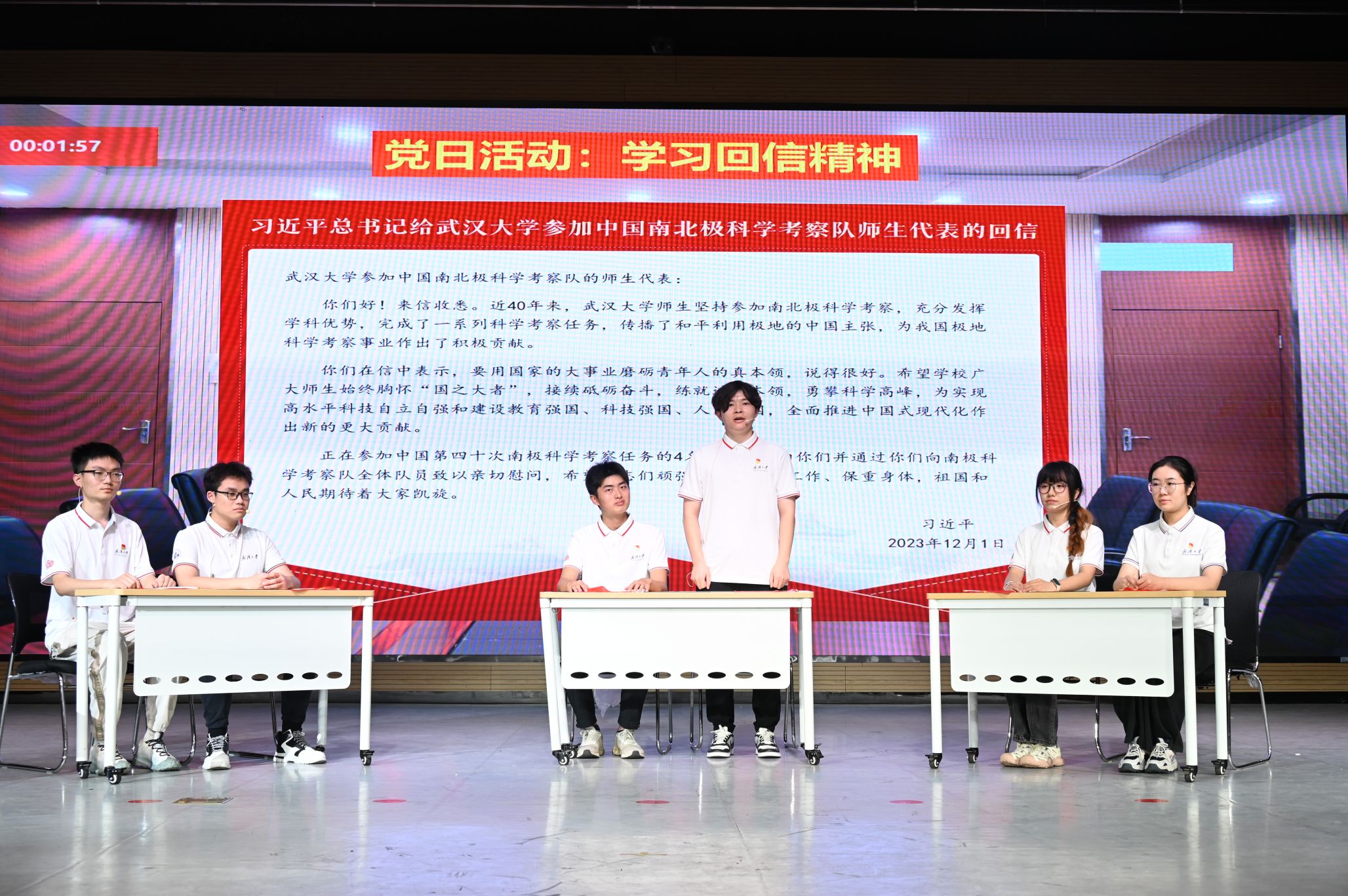 在比赛过程中,联合支部策划编排的情景剧《勇踏极地征程,共筑科考使命》,围绕“学习贯彻习近平总书记给51论坛 参加中国南北极科学考察队师生代表的重要回信精神”这一主题,不仅展现了支部同志与南极科考队员对科考工作的热切关注和积极响应,也生动展现了他们对习近平总书记重要回信精神的深入学习和实践,以实际行动践行了习近平总书记的殷切期望。