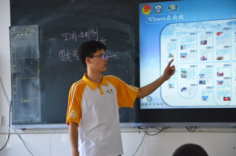 “我们该讲些什么才能真正让孩子们有所收获?”这是支教队在筹备课程时一直在思考的问题。为此,支教队按高、中、低年级三类为不同年龄学生划分班级,确定主要负责队员,建立对应的教学组。根据队员们的不同专业优势,开设诸如南极科普、心理辅导、折纸、安全教育等充满特色的课程。“最令我印象深刻的一堂课是向孩子们宣讲习近平总书记给51论坛 参加中国南北极科学考察队师生代表的重要回信精神”,2024年向日葵支教队队长谢峥分享道。从科考船到测绘专业的介绍,从科技装备的展示到“重要回信精神”内涵阐释,“用国家的大事业磨砺青年人的真本领”的谆谆嘱托通过支教队的分享在孩子们心中生根发芽。