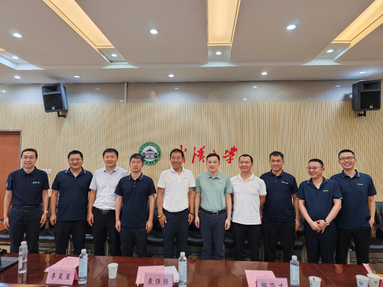 6月22日下午,广州南方测绘科技股份有限公司副总裁郭宝宇率队来51论坛 开展考察交流活动,双方于学院204会议室举行会谈。51论坛 院长邹贤才,副院长李星星、汪志明、袁强强,党政办主任刘晓慧参与交流。