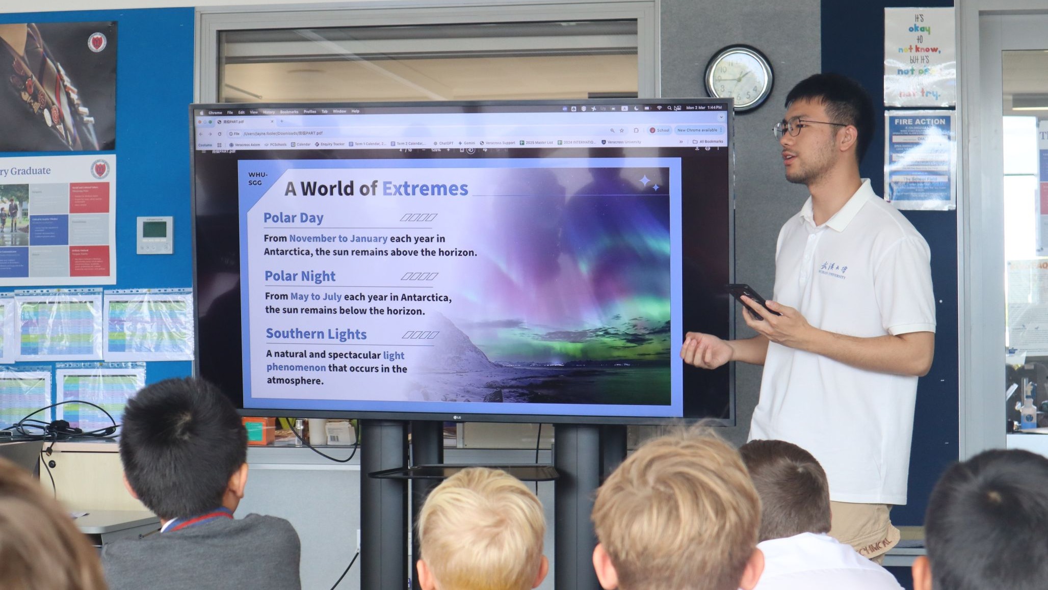 3月2日,实践队走进基督城 Medbury 小学,为该校94名学生带来极地科考与中华传统文化的科普体验课。