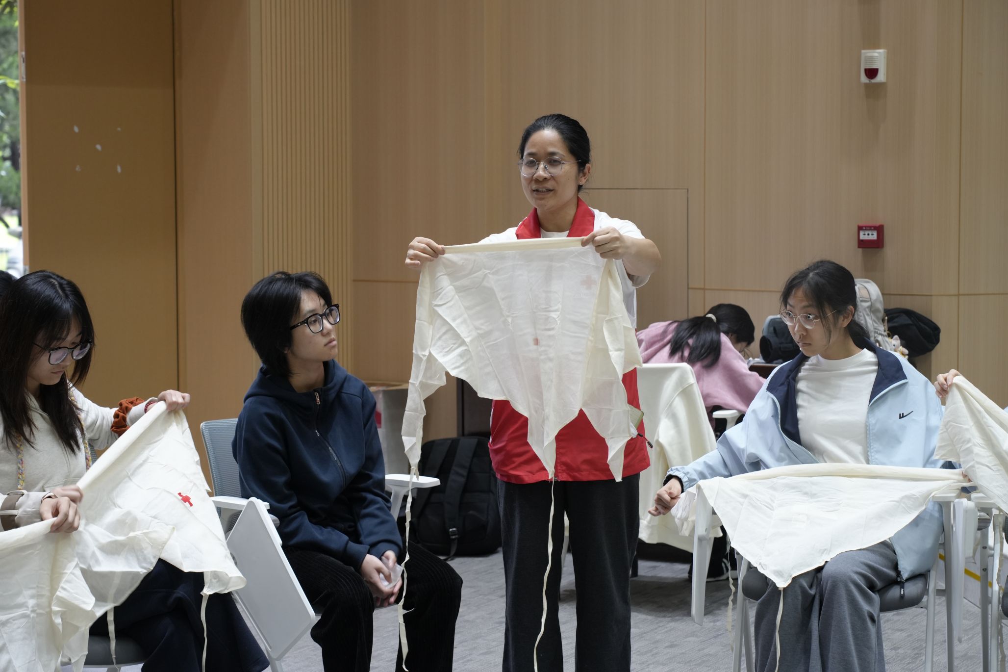 图8:红十字会老师进行外伤包扎授课