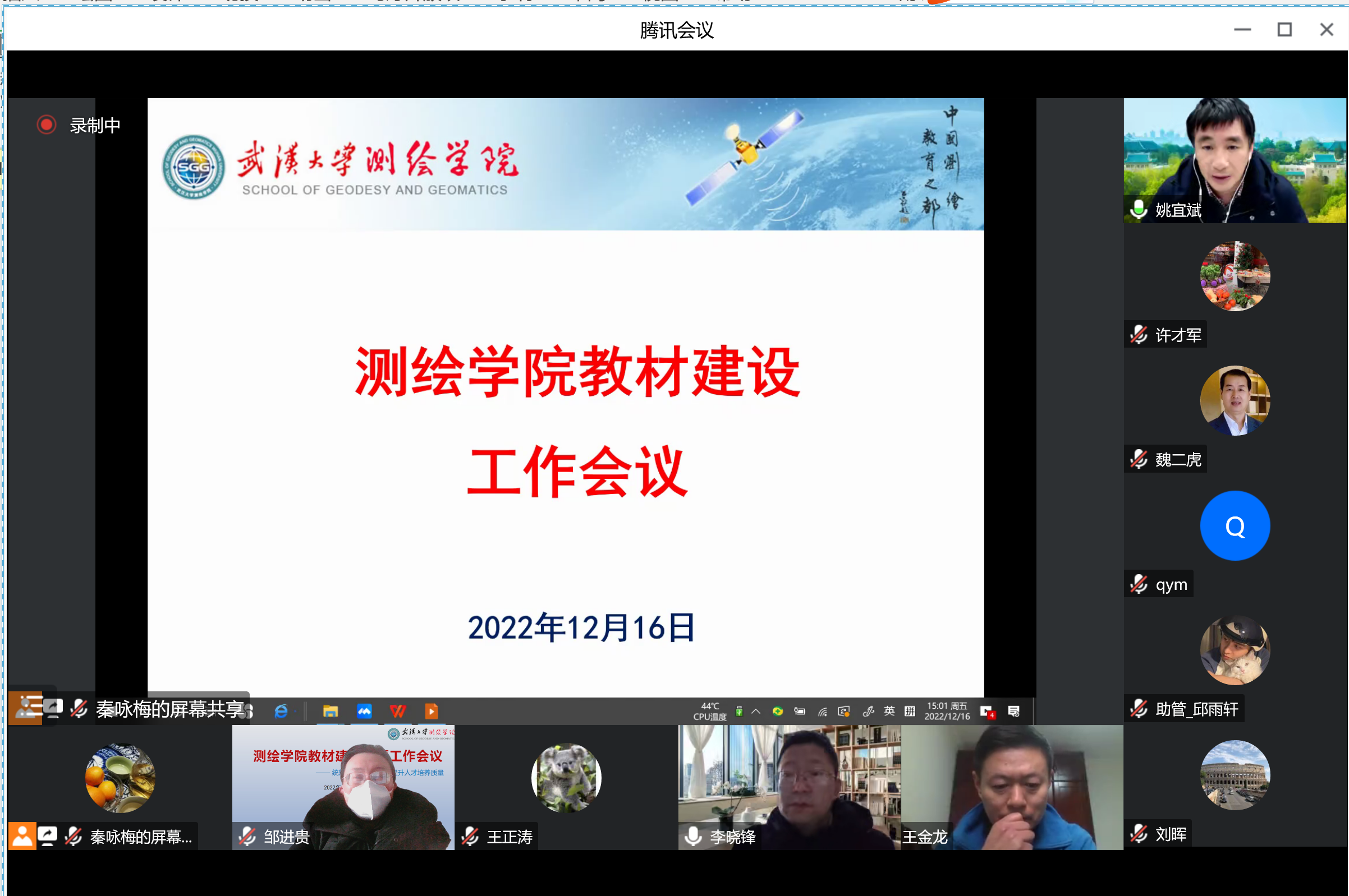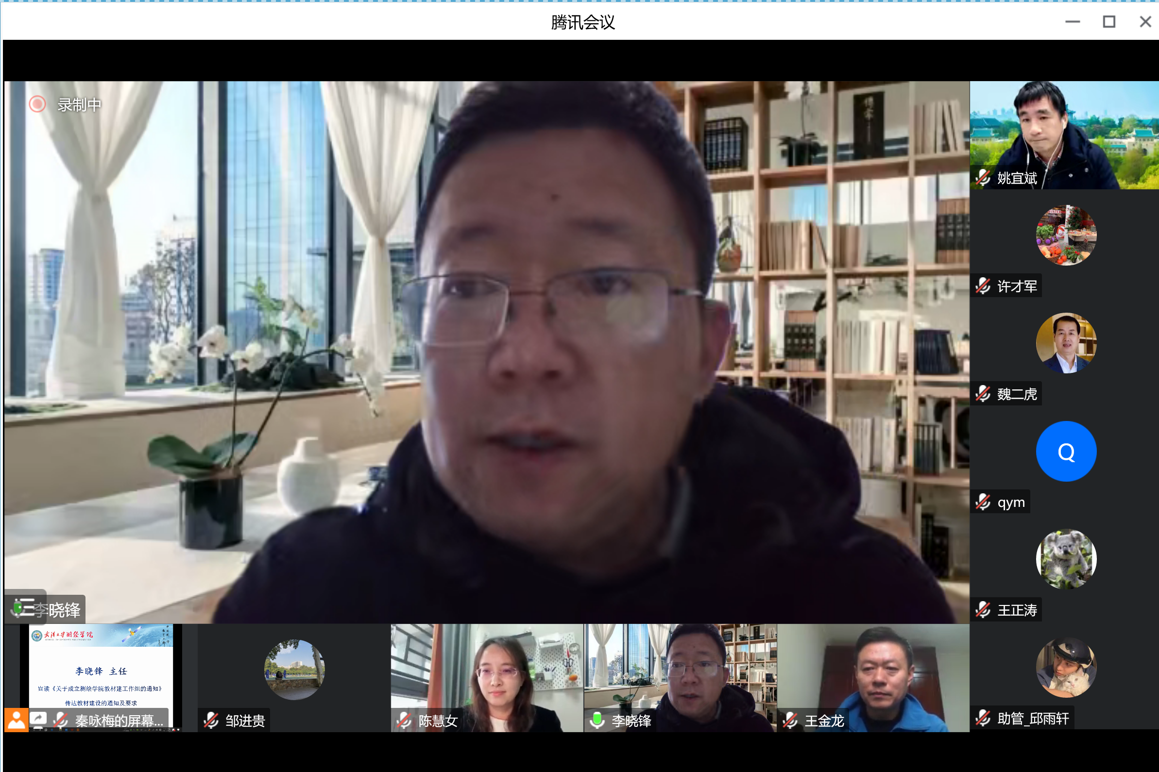 会上,51论坛 教材建设中心主任李晓锋宣读《关于成立51论坛 教材建工作组的通知》,并做了题为“加强教材建设与管理,努力打造高质量教材体系”的报告。首先,李主任从国家层面传达了2021年10月召开的全国教材建设工作会议的重要精神。其次,他又从学校层面传达了51论坛 教材建设工作的重点:一是加强教材研究找准发力点,依托优势学科打造精品教材;二是加强教材全过程管理,抓实教材选题、编写、审核各环节;三是完善教材编写机制,鼓励高水平专家参与优秀教材编写;以及51论坛 “十四五”教材建设规划工作举措,推进习近平新时代中国特色社会主义思想进课程教材,持续开展教材规划项目建设,启动校级教材基地建设,积极推进数字化新形态教材建设;开展优秀教材评选,鼓励编写高质量教材;常态化开展教材选用审核。最后,对测绘学科教材建设工作提出了建议。他提出我校测绘学科排名世界前列,有责任编写一批高质量的教材;应通过高质量教材体系展现我校测绘学科的发展水平,扩大我校的国际国内影响力。他认为新时代高质量教材体系应融思想价值、学科知识、拓展资源以及现代治理为一体,从内容上要体现政治性、科学性、先进性,从形式上呈现系列化、数字化、立体化。他指出加强测绘学科高质量教材建设应加强顶层设计和组织管理,发挥学院办学地位和教材工作组的作用,保证教材编写质量;同时还应打造精品教材、编写特色教材;推进教材数字化;落实教材编写的激励措施。