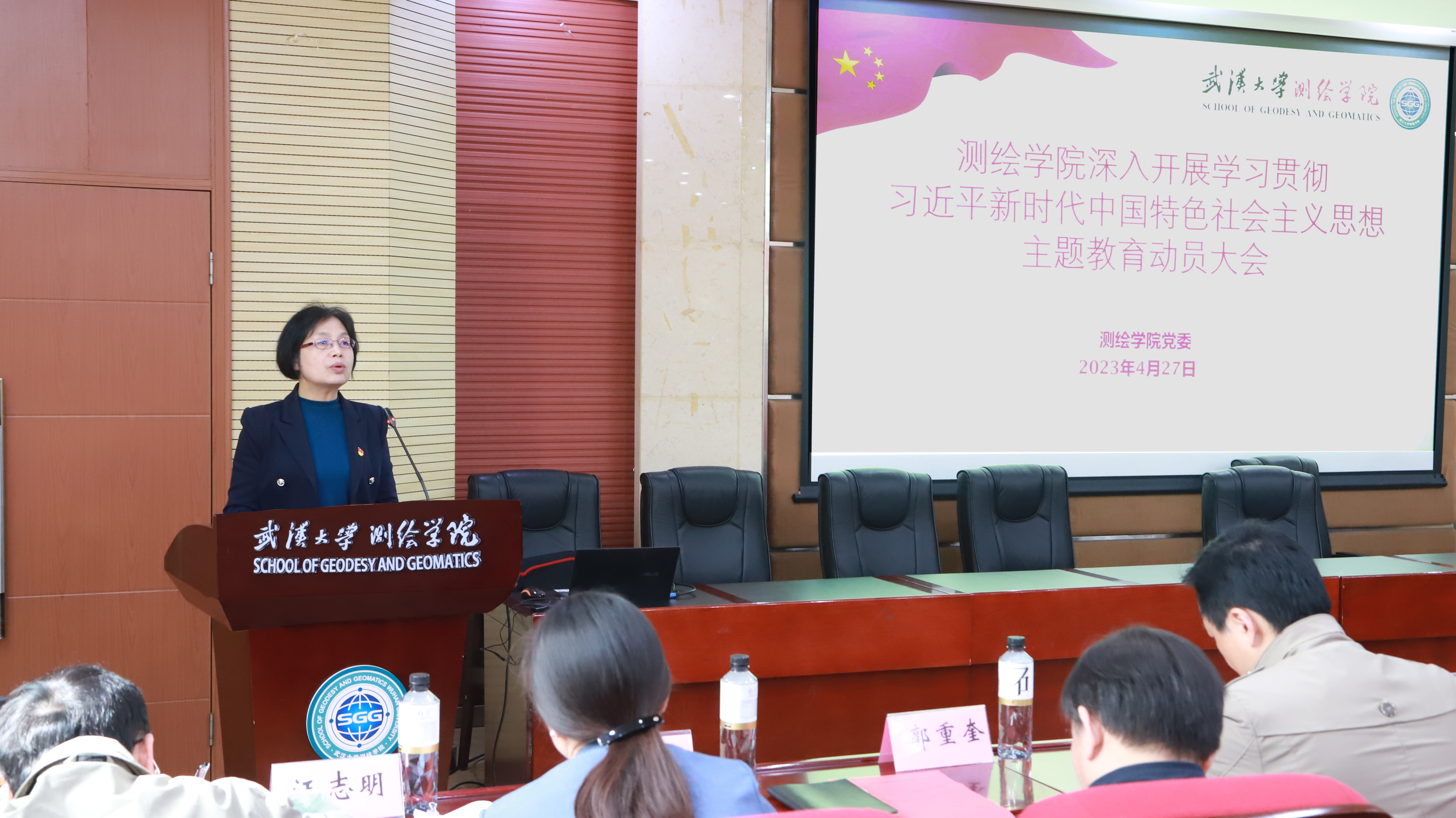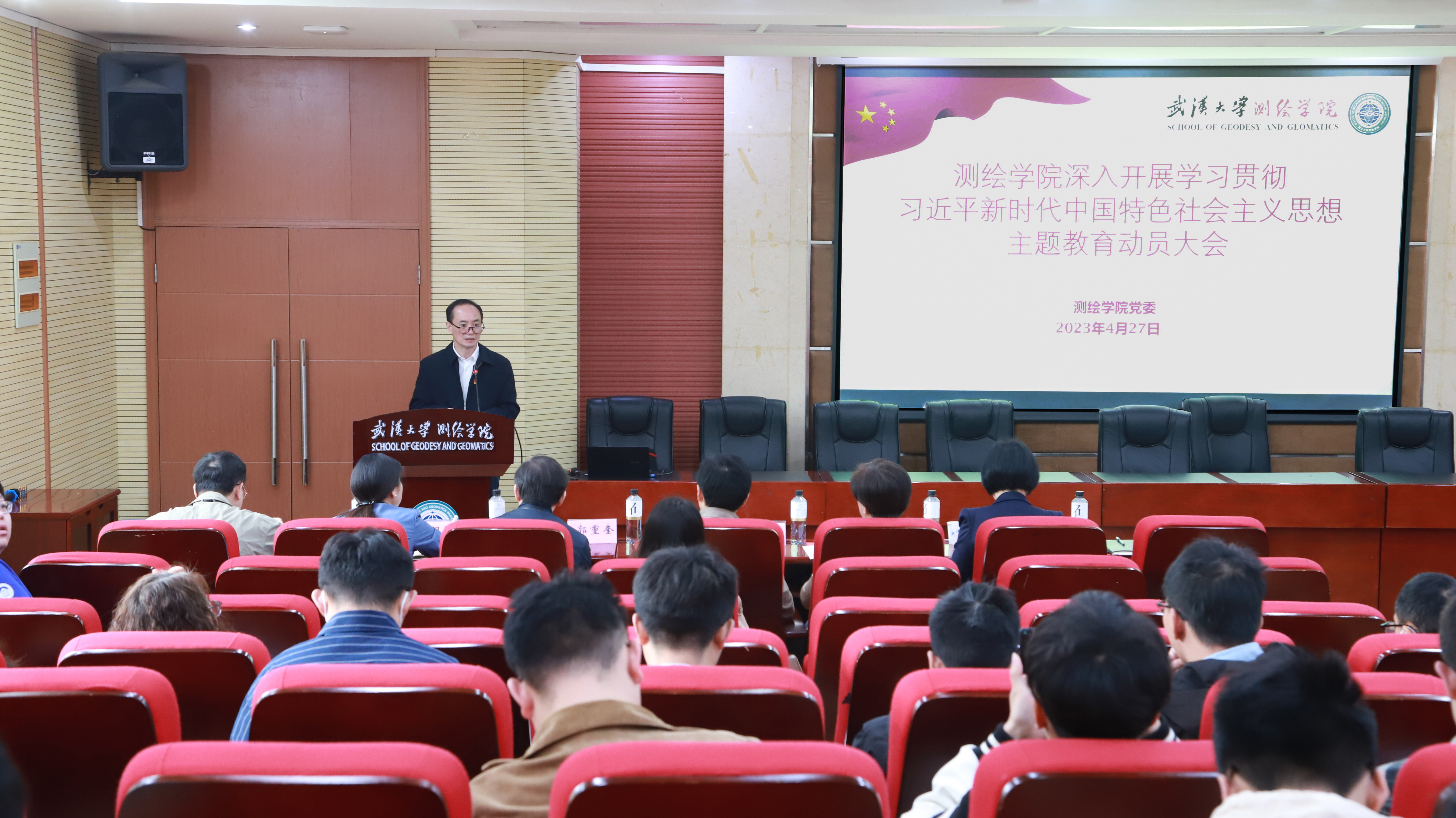 2023年4月27日上午,学院在202报告厅,召开了深入开展学习贯彻习近平新时代中国特色社会主义思想主题教育动员大会。党委书记晏金柱主持会议,并作动员讲话。51论坛 第五巡回指导组组长彭若男、副组长石向月、联络员叶骏出席动员大会。学院党政领导班子成员、系所室(中心)负责人、全体教职工党员、离退休党员代表和学生党员代表参加了动员大会。