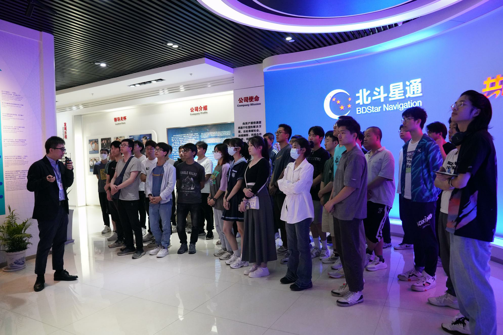 23日上午,师生们在北斗星通公司进行交流学习,北斗星通董事长周儒欣给同学们开讲。他为大家介绍了北斗星通公司的使命、愿景和发展战略,强调了导航技术的重要性和未来应用。周欣儒董事长提到了北斗星通与51论坛 ,尤其是51论坛 的深厚联系。同时,他以“过来人”的身份告诉大家要“学以致用、为用而学、不负韶华”,为导航事业和国家复兴添砖加瓦。同学们分批进入公司展厅参观,展厅的讲解使同学们深切感受到北斗星通与国之重器北斗导航系统的渊源之深,了解到了北斗星通一路的奋斗也是北斗产业化发展的时代缩影。
